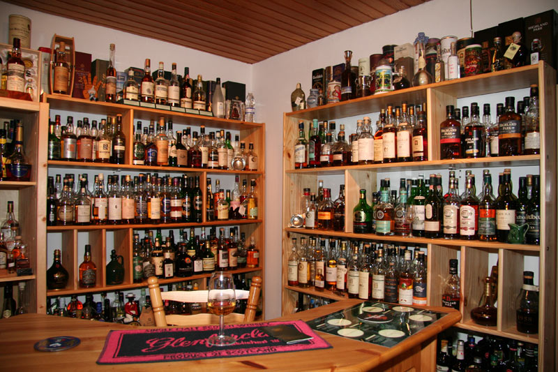 Der Abend brachte viele Erkenntnisse über die Branche und die Schwierigkeiten, eigene Aktivitäten erfolgreich zu koordinieren. Außerdem haben wir ebenso gut gegessen wie getrunken, was nicht zuletzt Ralfs beeindruckender Sammlung zu verdanken ist. Er hat von praktisch jeder arbeitenden Destillerie mindestens eine Abfüllung im Regal stehen, insgesammt weit über 300 Flaschen. Wenn Ihr links oben auf das Vorschaubild klickt, bekommt Ihr einen Eindruck seiner „Hausbar“ im Whiskyzimmer im Dachgeschoss seines Hauses. Mein Gästezimmer lag zum Glück gleich daneben, denn es wurde ein langer aber schöner Abend mit so guten Tropfen wie einem Mortlach 32yo, einem Bunnahabhain 34yo, einem Blair Athol 18yo Bicentennial oder einem Convalmore 28yo und vielen, vielen mehr.