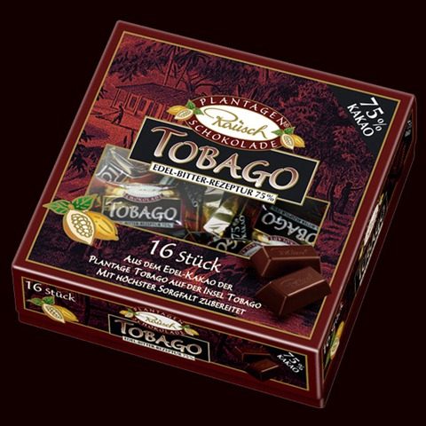 Tobago: Die Schokolade hat eine sehr interessante Kaffeenote, wodurch sie extrem gut zu den rauchig-trockenen Eichen- und Fruchtnoten des Whiskys passt. Trotzdem eher mild.