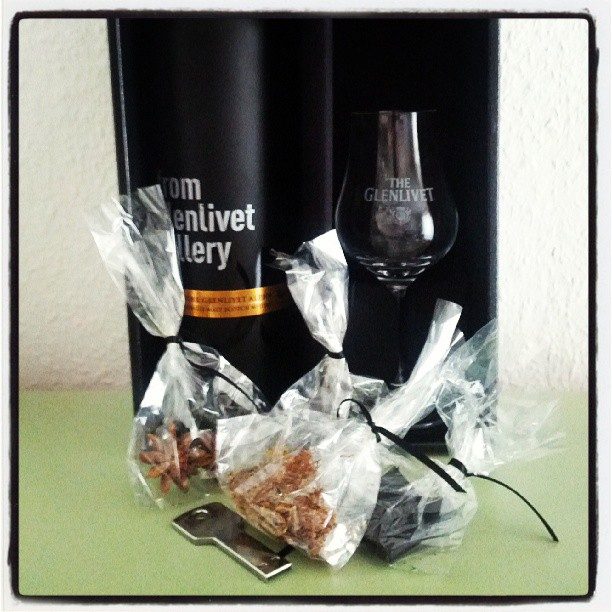 Zugegebenermaßen ziemlich gut. Der Alpha ist extrem fruchtig, irgendwo zwischen exotischer Mango und einheimischem Pfirsich inklusive samtiger Textur und sirupartigem Abgang. Dahinter schwebt ein tiefer, trockener und würziger Eichenton vom Fass. Ich habe ihn mit dem Glenlivet Nàdurra verglichen, der selbst mit viel Wasser nicht an die Fruchtigkeit des Alpha herankommt. In dem Probepaket, das ich von der Marketingagentur von Glenlivet erhalten habe, waren kleine Tüten mit Sternanis, Vanille, Tabak und Leder enthalten. Die ersten beiden kann ich ja noch nachvollziehen, bei Tabak und Leder wird es schwieriger. Der Tabak steckt vielleicht in der leicht rauchigen Nase, aber das Leder? Ich werde ihn wohl nochmal probieren müssen …