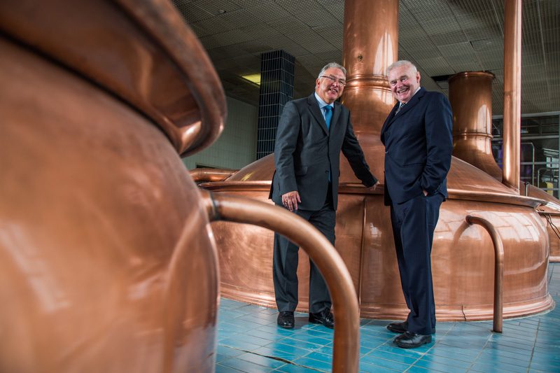 Copyright Diageo 2013: Paul Armstrong, Supply Director Brewing, vom International Supply Centre, Diageo, im Gespräch mit John Teeling von der neuen Irish Whiskey Company im Sudhaus der Great Northern Brewery, die von den Einheimischen gerne Harp-Brewery genannt wurde.