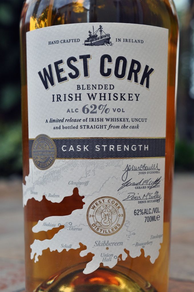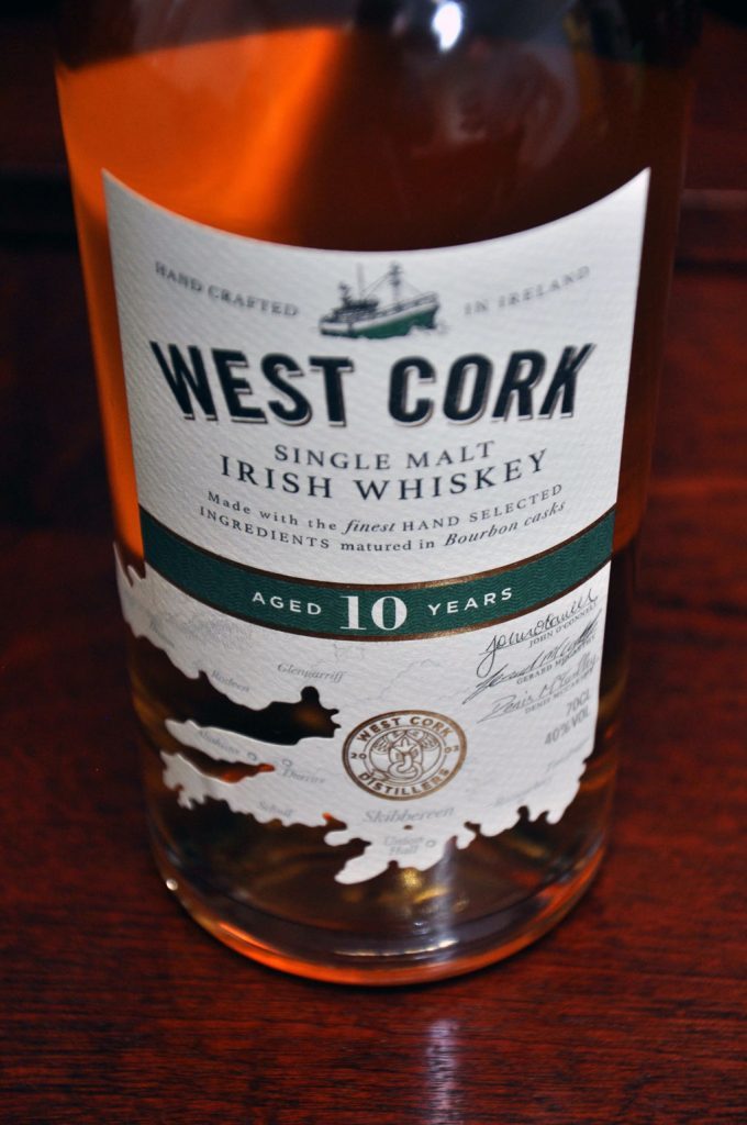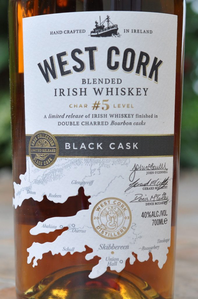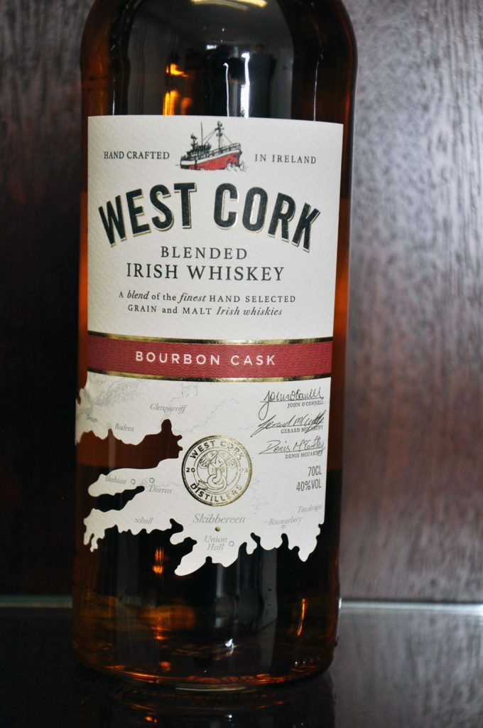 Rund 90 % des West Cork Portfolios gehen in das Ausland. Darunter sind ein in Firstfill-Bourbon Cask gereifter Blend aus 75 % Grain Irish Whiskey und 25 % Irish Malt Whiskey, ein zehn Jahre alter in Pot Still gebrannter Single Malt aus 100 % gemälzter irischer Gerste, zwölf Jahre alte Finishes, die in Portwein‑, Rum- oder Pedro-Ximenez-Fässern für 110 Tage nachreiften. Eine Besonderheit ist die Black Cask-Abfüllung, ein Verschnitt aus 66 % Grain Irish Whiskey und 33 % Malt Irish Whiskey, der in Bourbon-Fässern nachreifte, die in der West Cork Distillery mit einen speziellen Verfahren unter Gasfeuer bis zu vier Minuten ein zweites Mal ausgebrannt wurden. Intensive Bourbon-Aromen prägen daher diesen milden Irish Whiskey.