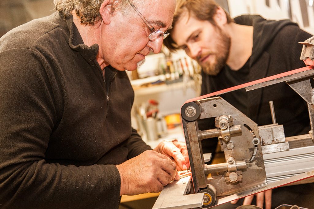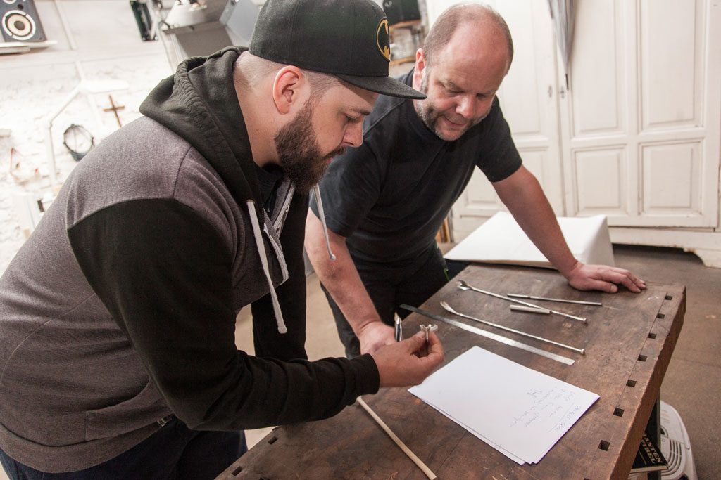 Den Praxistest bestand das Unikat am Eventabend beim Mixen des „Malt Swizzle“, einer Drink-Kreation als Hommage an das Tool, mit Bravour: Der Griff ermöglicht durch seine Länge diverse Einsatzmöglichkeiten und die gehämmerte Struktur sorgt beim schnellen Verrühren von Zutaten im Glas für besseren Grip. Dies erleichtert den hektischen Barbetrieb deutlich und sichert dem Swizzle Stick einen festen Platz im Bestand der Bartools im Herzog. Während die anwesenden Gäste in lockerer Atmosphäre verschiedene Single Malt-Interpretationen probierten, konnten sie sich von Denis Aubeck in die Kunst des Silberschmiedhandwerks einführen lassen. Der geborene Münchner, der sich 2006 als Gold‑, Silberschmiedemeister und Metallbildner mit seiner eigenen Schmiede selbstständig gemacht hat, präsentierte voller Leidenschaft die Einzigartigkeit des Swizzle Sticks.