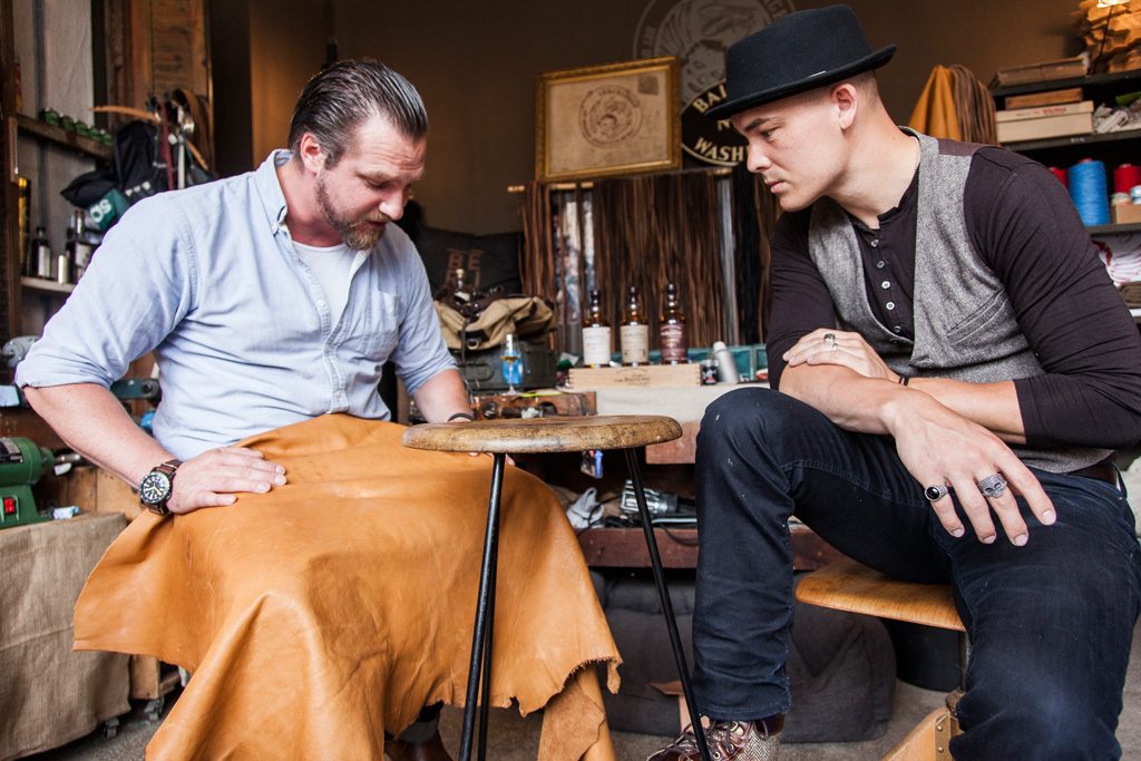 Ein eindrucksvoller Einblick in die Entstehungsgeschichte eines weiteren exklusiven Bartools aus der 5 Crafts Collection wurde auch den Gästen des nächsten Tourstops in der Bar Tausend in Berlin geboten: Marc Türkheim, Gründer von Emma Opitz, einer Berliner Manufaktur für hochwertige Lederlinge, präsentierte eine in Handarbeit entstandene lederne Barschürze.