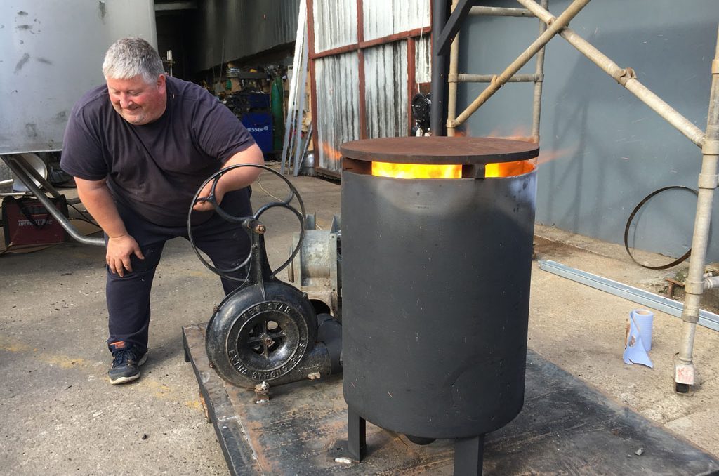 Abbildung 1–3: Beheizter Brenner mit dem ausgebrannten Fass