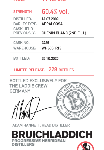 Die Micro Provenance Serie der Laddie Crew Deutschland geht in eine neue Runde: Laddie Crew Cask 2486 (228 Flaschen) 2009er Organic Barley / Chenin…